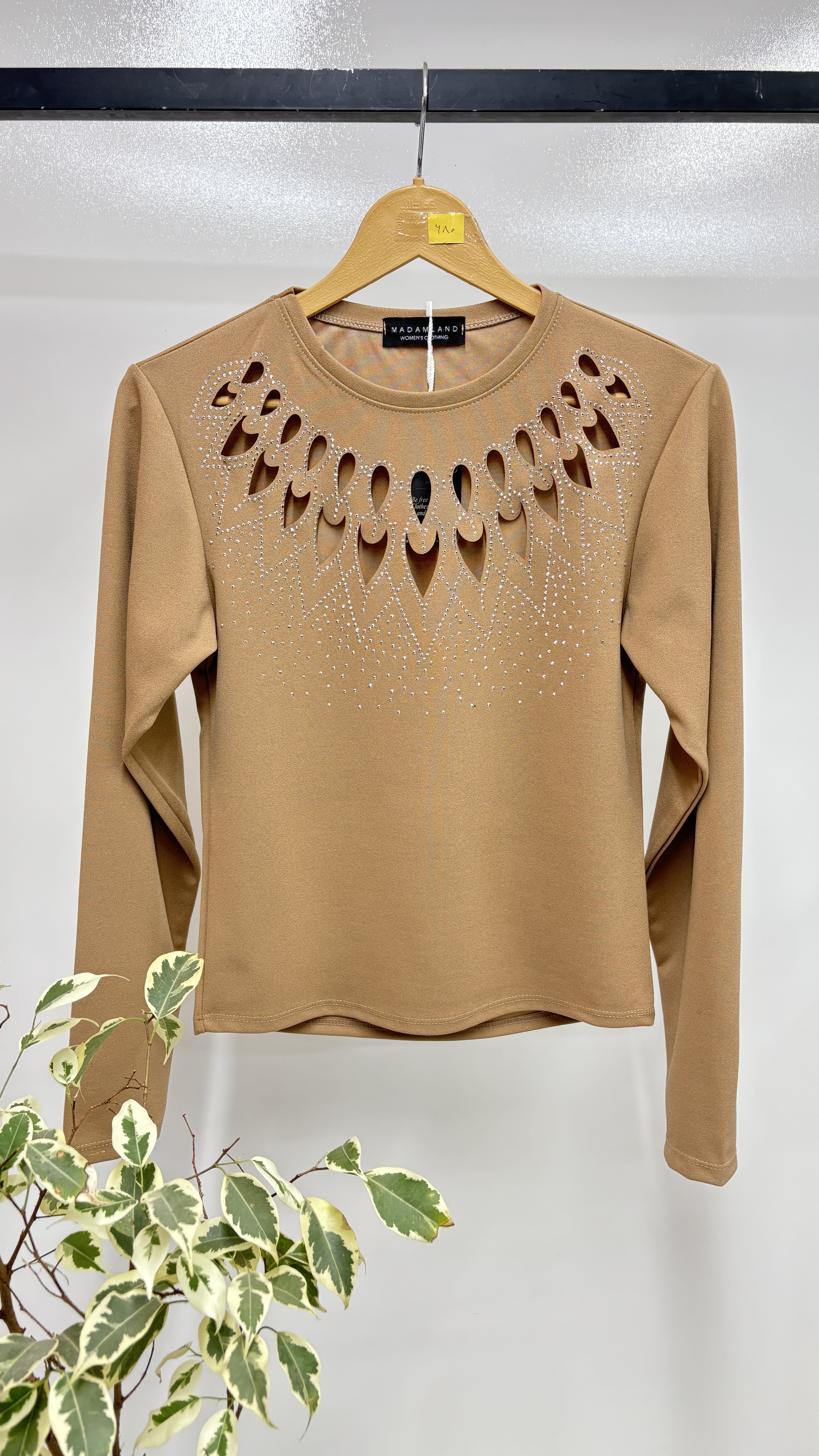بلوز نگین خورشیدی کرپ آستین بلند۶۸۰٬۰۰۰ تومان